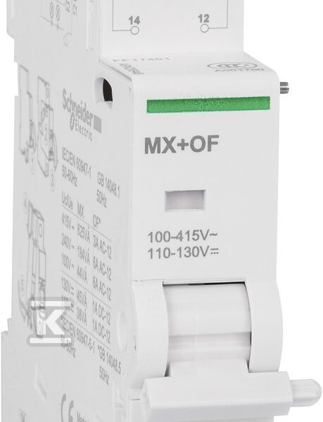 Wyzwalacz wzrostowy Acti9 ze stykiem MX+OF-230/400 1CO 100415 VAC, 110130 VDC o numerze katalogowym A9N26946 w kategorii Pozostałe zabezpieczenia, Zabezpieczenie