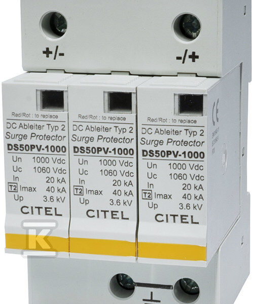 Ogranicznik przepięć do fotowoltaiki TYP 2 1000VDC SPPVRT2-10-2+PE o numerze katalogowym   EP-501966 w kategorii Ograniczniki PV Typ 2>Ograniczniki przepięć