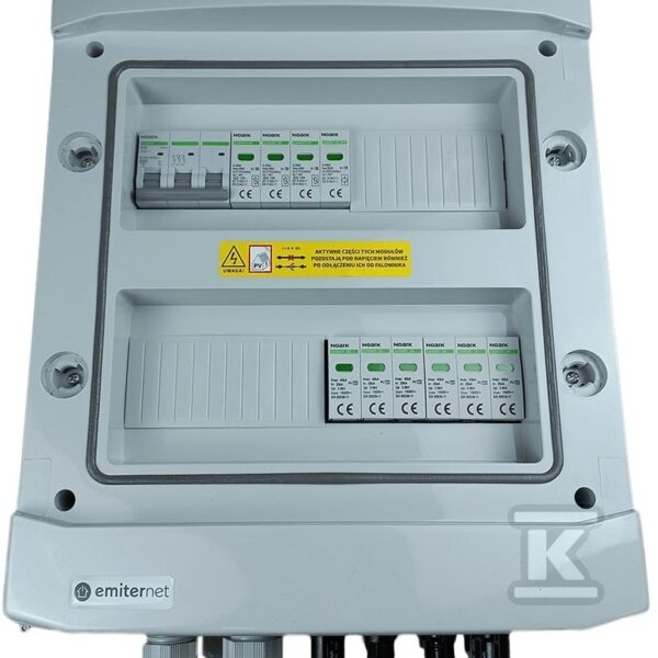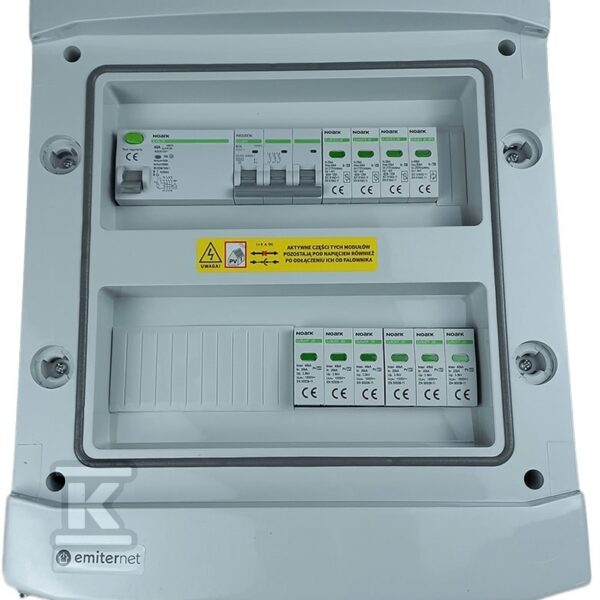 Rozdzielnica DCAC hermetyczna IP65 EMITER z ogranicznikiem przepięć DC Noark 1000V typu 2, 2 x MPPT / ogr. AC Dehn