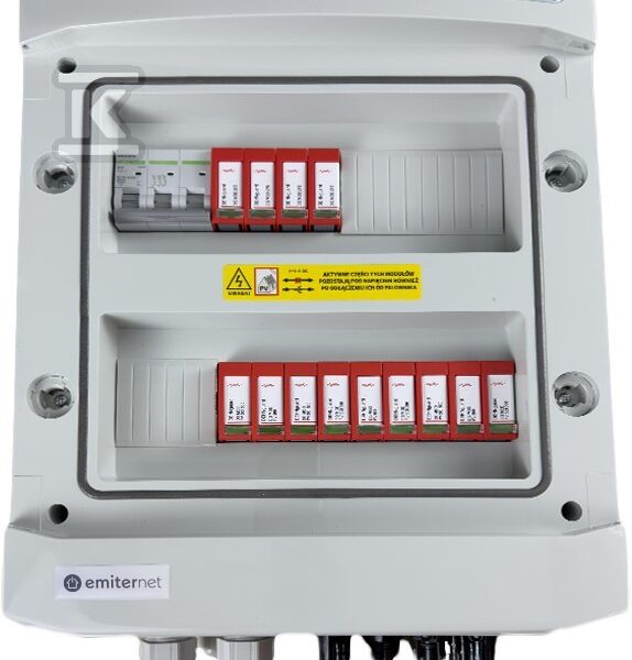 Rozdzielnica DCAC hermetyczna IP65 EMITER z ogranicznikiem przepięć DC Dehn 1000V typu 2, 2 x MPPT / ogr. AC Dehn