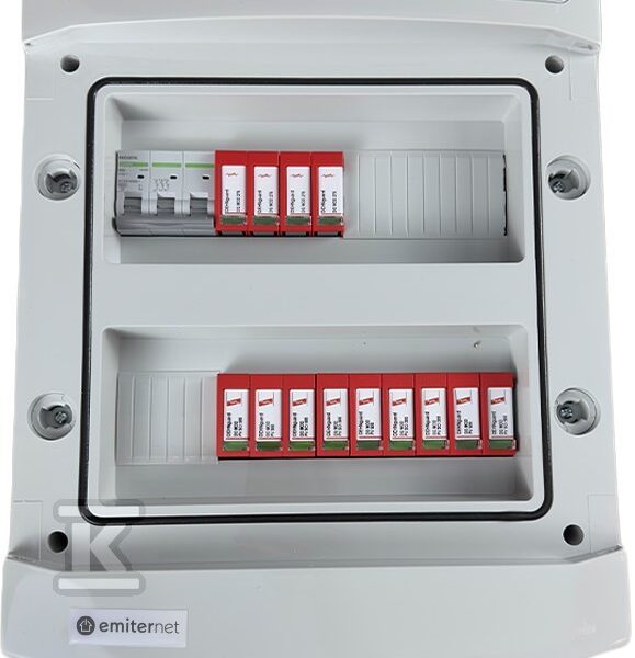 Rozdzielnica DCAC hermetyczna IP65 EMITER z ogranicznikiem przepięć DC Noark 1000V typu 1+2, 2 x MPPT / ogr. AC Noark