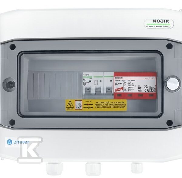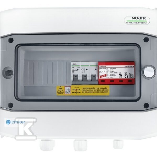 Rozdzielnica przyłączeniowa DCAC hermetyczna IP65 EMITER z ogranicznikiem przepięć DC Dehn 1000V typu 2, 2 x łańcuch PV, 2 x