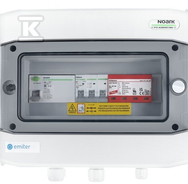 Rozdzielnica przyłączeniowa AC hermetyczna IP65 EMITER z ogranicznikiem przepięć AC Dehn typ 1+2, 40A 3-F o numerze katalogowym   EM-50_AC