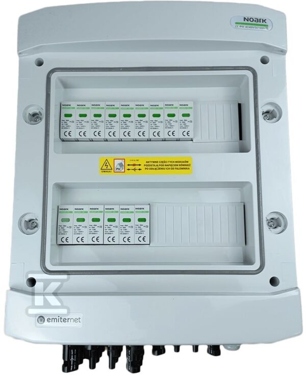 Rozdzielnica DC hermetyczna IP65 EMITER z ogranicznikiem przepięć DC Noark 1000V typu 2, 2x MPPT o numerze katalogowym   EM-2N_DC