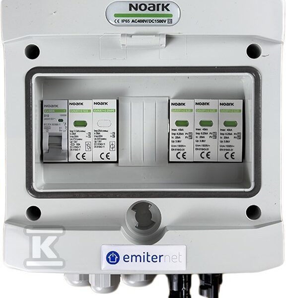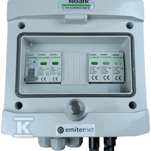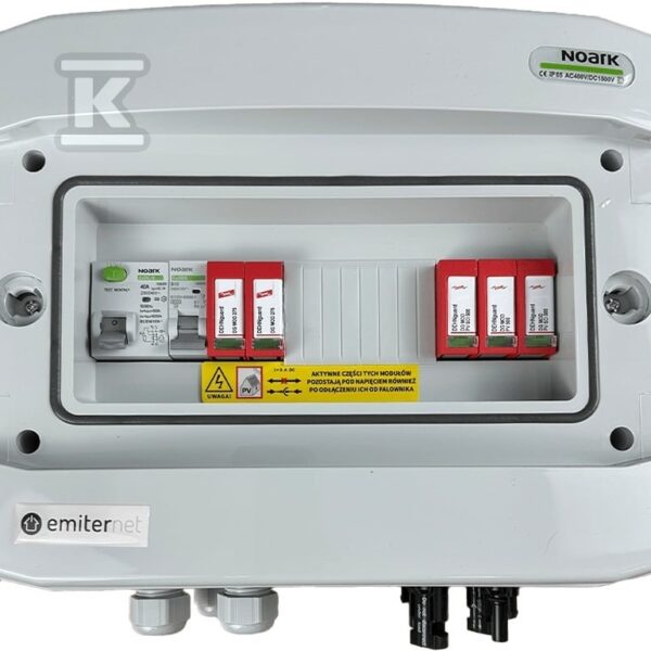 Rozdzielnica DCAC hermetyczna IP65 EMITER z ogranicznikiem przepięć DC Noark 1000V typu 2, 1 x MPPT, 10A 1-F o numerze