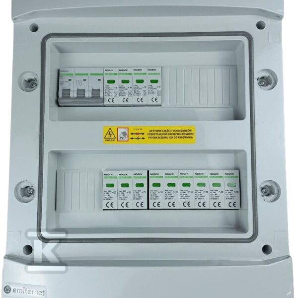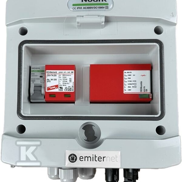 Rozdzielnica DCAC hermetyczna IP65 EMITER z ogranicznikiem przepięć DC Noark 1000V typu 1+2, 1 x MPPT / ogr. AC Noarktyp