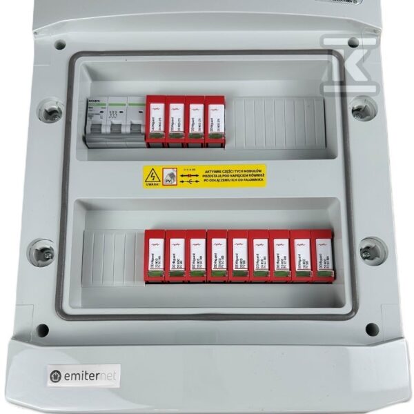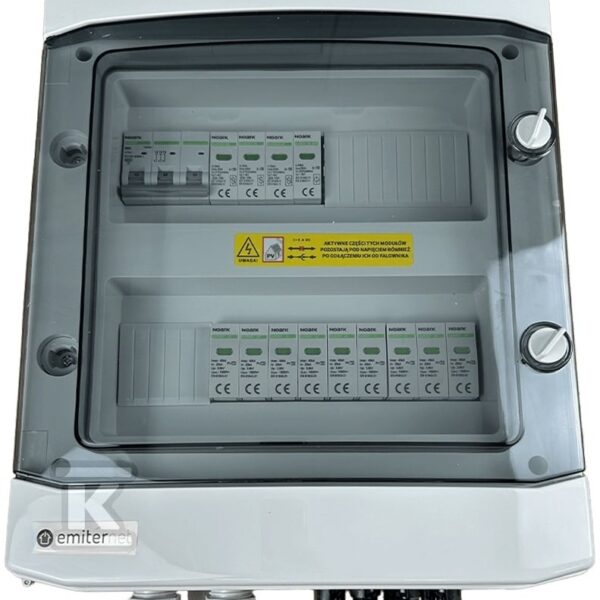 Rozdzielnica DCAC hermetyczna IP65 EMITER z ogranicznikiem przepięć DC Dehn 1000V typu 2, 2 x MPPT / ogr. AC Dehn