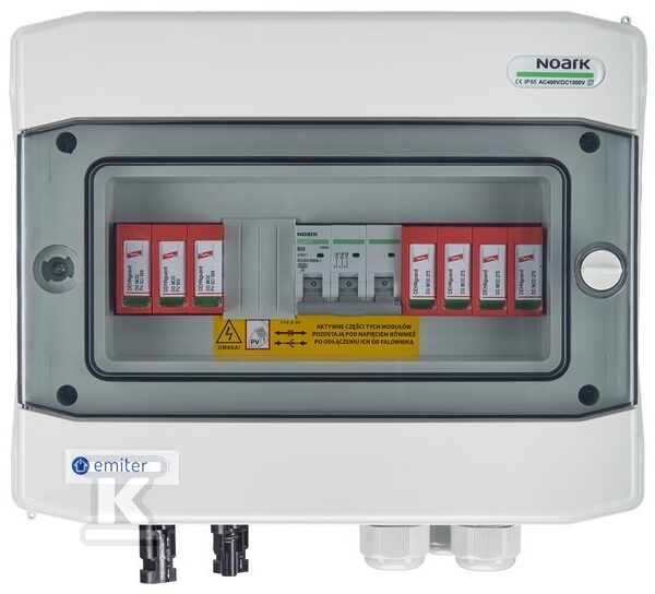 Rozdzielnica przyłączeniowa DCAC hermetyczna IP65 EMITER z ogranicznikiem przepięć DC Dehn 1000V typu 1+2, 1 x łańcuch PV, 1 x