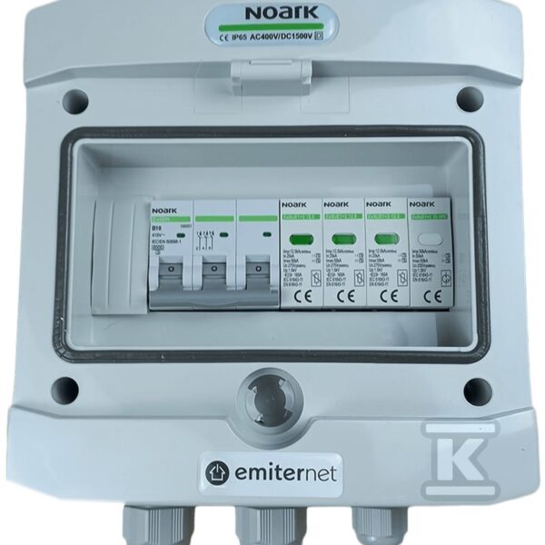 Rozdzielnica AC hermetyczna IP65 EMITER z ogranicznikiem przepięć AC Noark typ 1+2, 16A 3-F o numerze katalogowym &nbsp EM-232N_AC w