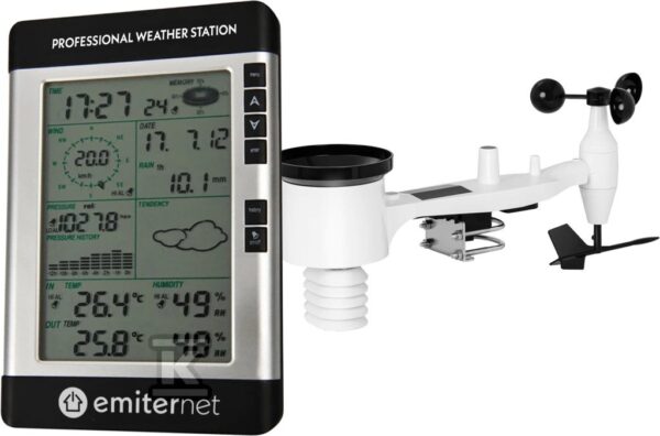 Stacja pogodowa z bezprzewodowym wyświetlaczem LCD o numerze katalogowym &nbsp HIP-ST-POM w kategorii Fotowoltaika>Turbiny wiatrowe. Produkt wyprodukowany przez markę EMITER.