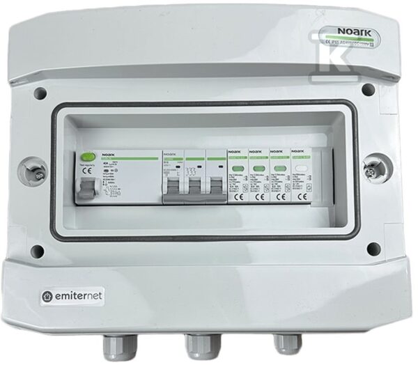 Rozdzielnica AC hermetyczna IP65 EMITER z ogranicznikiem przepięć AC Noark typ 1+2, 16A 3-F o numerze katalogowym   EM-232N_AC w