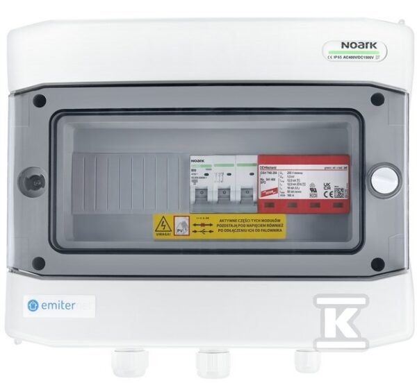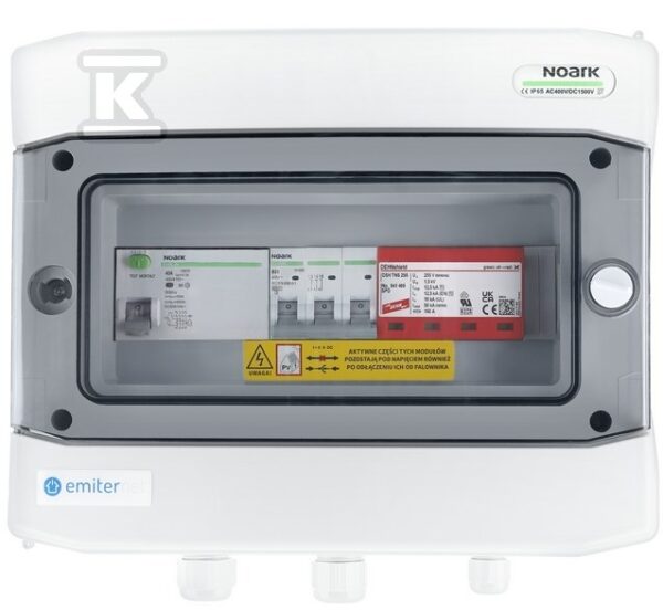 Rozdzielnica przyłączeniowa AC hermetyczna IP65 EMITER z ogranicznikiem przepięć AC Dehn typ 1+2, 40A 3-F o numerze katalogowym   EM-50_AC
