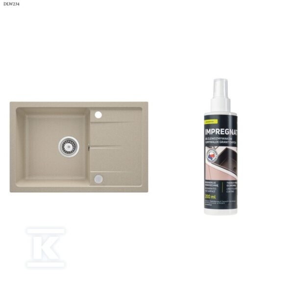 Zlewozmywak granitowy 1-komorowy z ociekaczem Leda, piasek oraz impregnat do zlewozmywaków granitowych Plus, 200 ml o numerze katalogowym   DLW234