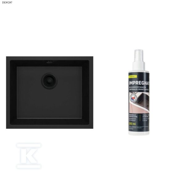 Zlewozmywak granitowy 1-komorowy Corda podwieszany, nero oraz impregnat do zlewozmywaków granitowych Plus, 200 ml o numerze katalogowym   DLW296 w