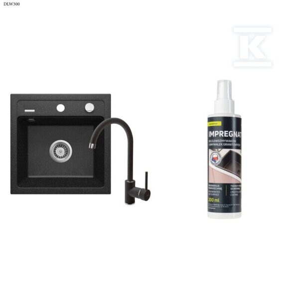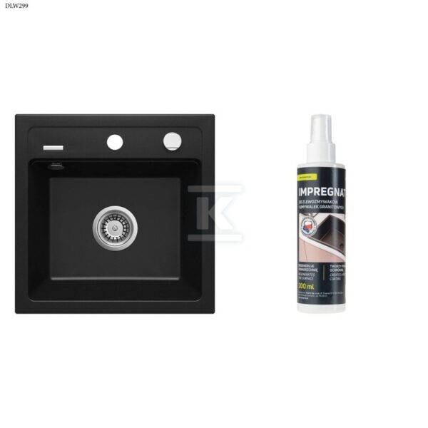 Zlewozmywak granitowy 1-komorowy z ociekaczem Zorba, nero oraz impregnat do zlewozmywaków granitowych Plus, 200 ml o numerze katalogowym   DLW298