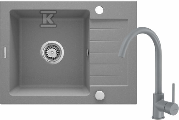 Zlewozmywak granitowy z baterią 1-komorowy z ociekaczem Zorba, szary metalik o numerze katalogowym   ZQZAS11A w kategorii Zlewozmywaki>Zlewy granitowe/kompozytowe 1