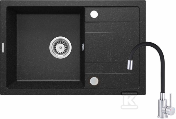 Zlewozmywak granitowy z baterią 1-komorowy z ociekaczem Zorba, nero o numerze katalogowym   ZQZAN11A w kategorii Zlewozmywaki>Zlewy granitowe/kompozytowe 1 komorowe.