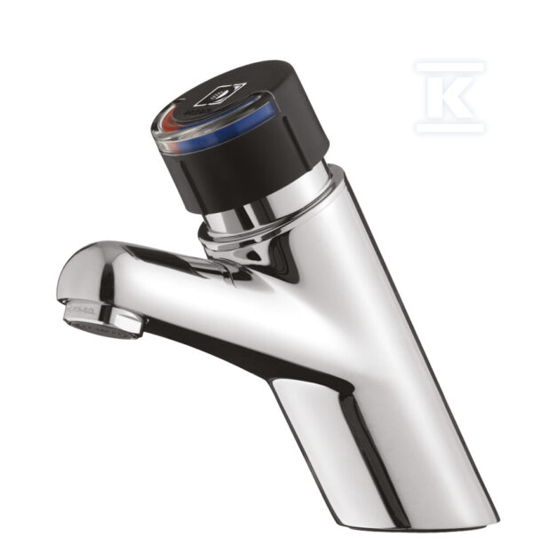 Bateria umywalkowa czasowa, stojąca z antyblokadą, czarne pokrętło, bez zaworów odcinających PRESTO 4000S o numerze katalogowym   28440 w kategorii
