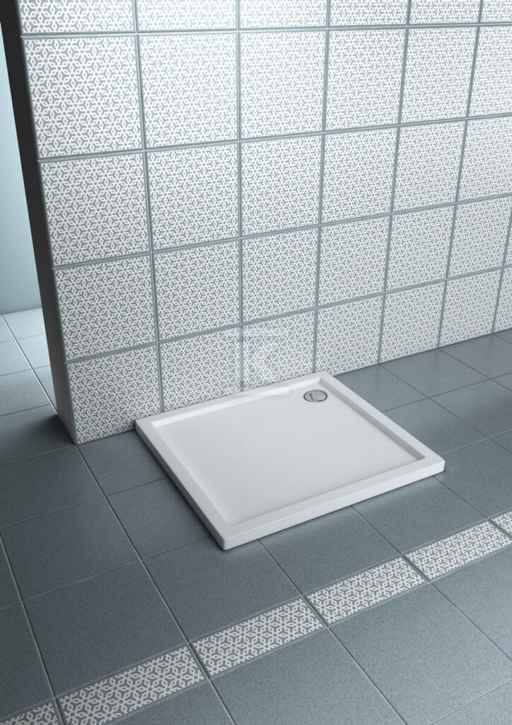 Brodzik kwadratowy Geberit Sestra 90×90 cm, szary o numerze katalogowym 550.260.00.2 w kategorii Brodziki kwadratowe akrylowe, z konglomeratu, Brodziki prysznicowe.