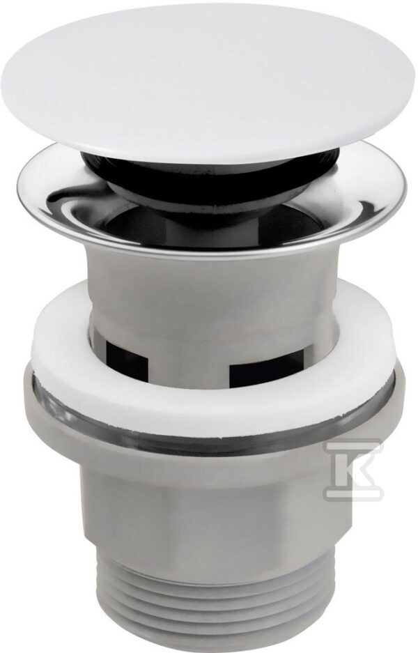Zawór spustowy do umywalek z przelewem, polipropylen, korek ceramiczny, biały o numerze katalogowym  S288PPC w kategorii Przyłącza WC, sztucery, złącza,