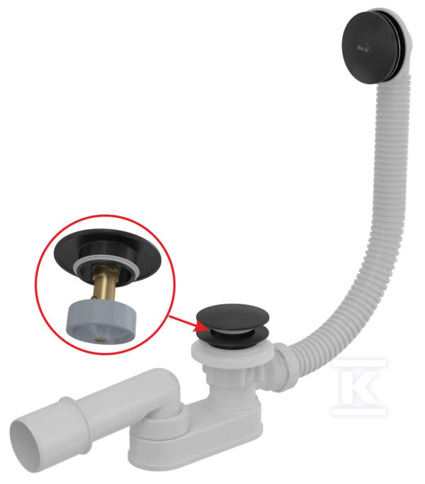 Syfon wannowy CLIK/CLAK, czarny-mat A507BLACK-80 o numerze katalogowym   A507BLACK-80 w kategorii Syfony, redukcje, złącza, rury przyłączeniowe itp.>Syfony do wanien.