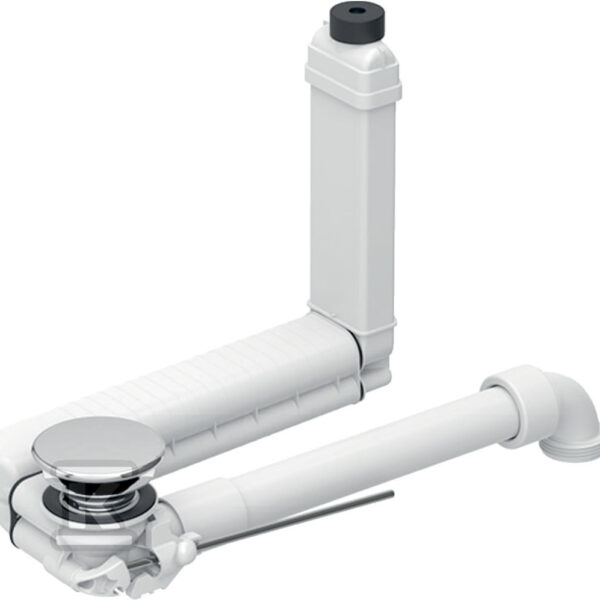 Zestaw odpływowo-przelewowy do umywalki Clou model oszczędzający przestrzeń uruchamiany za pomocą dźwigni z pokrywą odpływu o numerze katalogowym   152.013.21.1