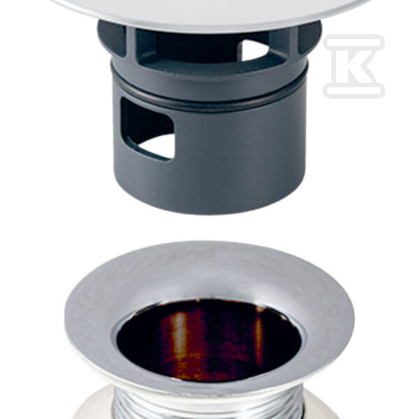 Zestaw odpływowo-przelewowy Clou do umywalek, z cięgłem i pokrętłem o numerze katalogowym 152.019.00.1 w kategorii Syfony umywalkowe i bidetowe, Syfony,
