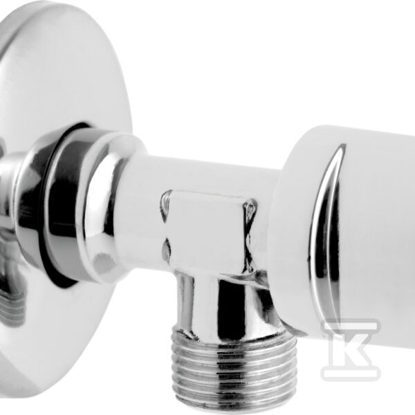Zawór kątowy z głowicą ceramiczną Strit chrom 1/2″-1/2″ o numerze katalogowym 1482750 w kategorii Zawory przyłączeniowe, czerpalne i złączki łazienkowe,