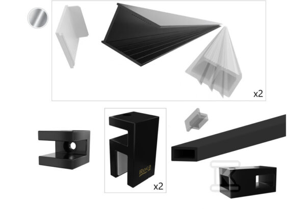 Zestaw DISTRICT DF+LF – czarny mat, do stworzenia przymkniętej przestrzeni stworzonej z dwóch ścianek WALK-INZestaw zawiera: 2xProfil ścienny 2000mm, 1xWspornik 2000mm, 1xMocowania, 1xMocowanie typu T