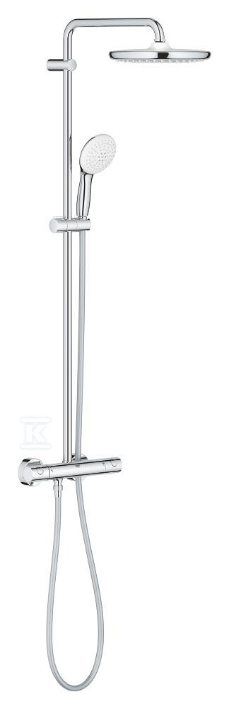 Termostatyczny system prysznicowy Tempesta System 250 do montażu ściennego, chrom, blokada bezpieczeństwa SafeStop, ogranicznik przepływu 8,5 l/min, w zestawie: deszczownica