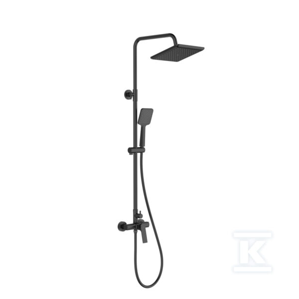 Deszczownia z baterią natryskową KALITEA czarny o numerze katalogowym   AU-72-004-V w kategorii Zestawy prysznicowe>Deszczownice, głowice górne, zestawy z bateriami.