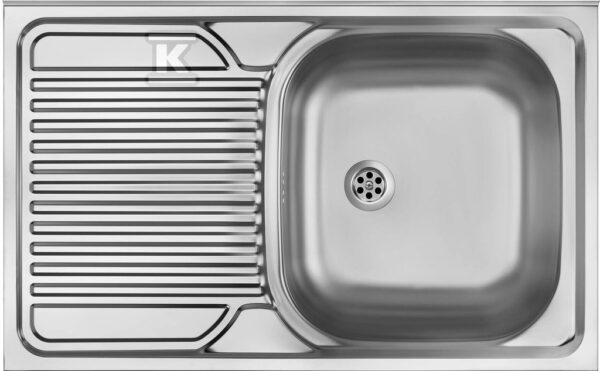 Zlewozmywak stalowy 1-komorowy z ociekaczem Tango po prawej stronie – nakładany, satyna o numerze katalogowym   ZM6_011P w kategorii Zlewozmywaki>Zlewy