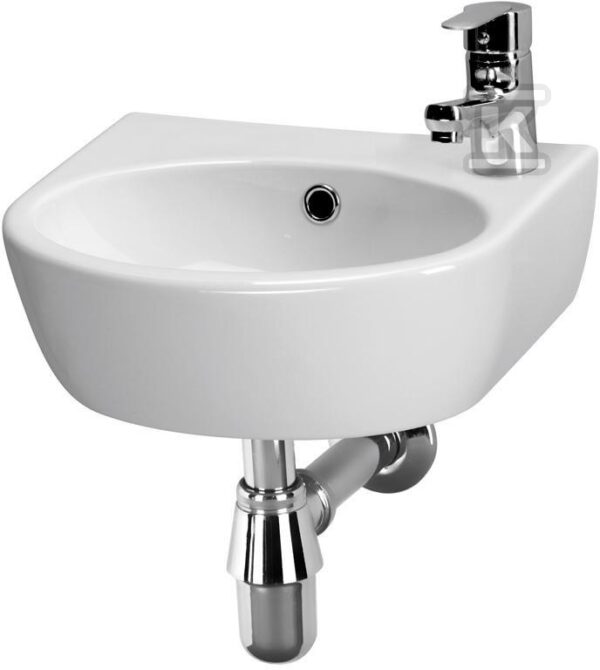 Umywalka Parva 40 lewa o numerze katalogowym K27-009-L w kategorii Umywalki ceramiczne, Ceramika. Produkt wyprodukowany przez markę CERSANIT, seria PARVA.