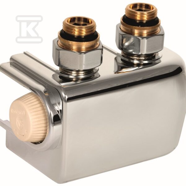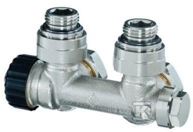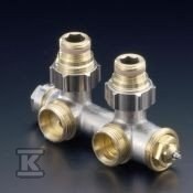 Zawór podwójny Therafix Uniwersal z zespolonym zaworem termostatycznym z wkładką SX z nastawą wstępną, przyłącze grzejnika 3/4″ gz, Euroconus, w