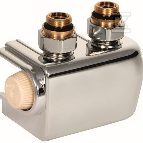 Zawór podwójny Therafix Uniwersal z zespolonym zaworem termostatycznym z wkładką SX z nastawą wstępną, przyłącze grzejnika 3/4″ gz., uszczelnienie płaskie
