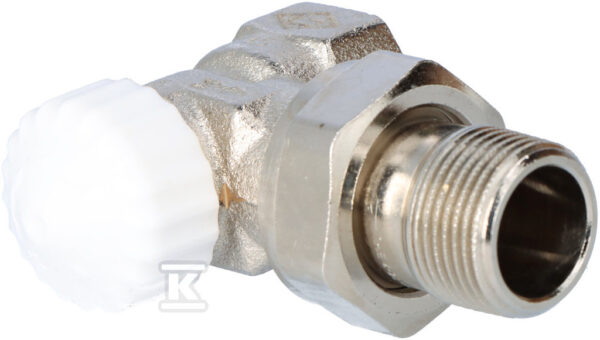 Zawór termostatyczny V-exakt II DN15 niklowany, kapa biała, kątowy, z nastawą wstępną. o numerze katalogowym 3711-02.000 w kategorii Zawory termostatyczne,