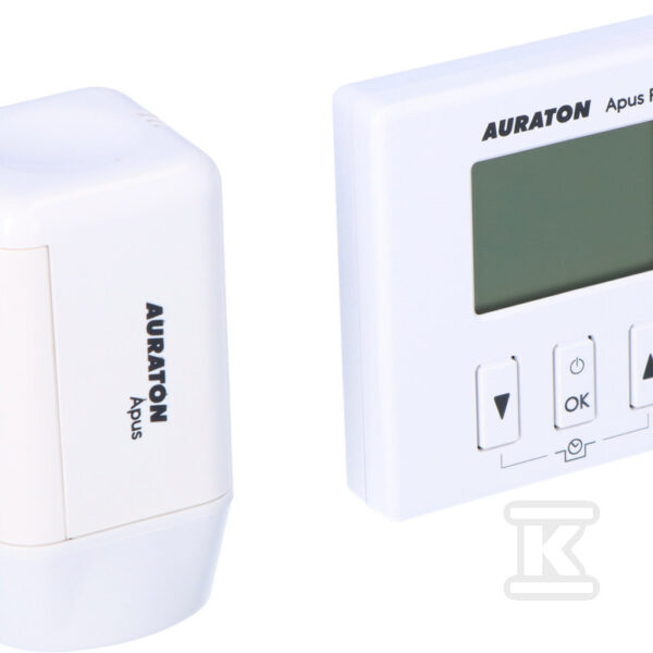 AURATON Apus SET – dobowy, bezprzewodowy regulator temperatury z elektroniczną głowicą grzejnikową (zestaw), (następca modelu 200TRA) o numerze katalogowym AUR00APS0SE00