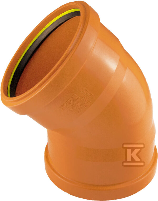 Kolano PP 110/45 SN16 (gr.ścianki-szereg S13.3), do kanalizacji zewnętrznej, dwukielichowe z uszczelką K-U21 typu LOCK