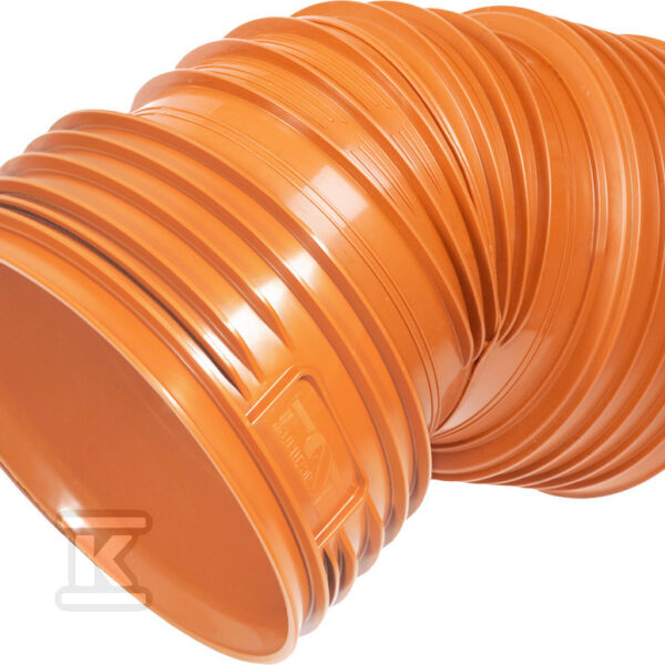 Kolano dwukielichowe PP K2-KAN DN/OD 160 /45, korugowane, bez uszczelki, do kanalizacji zewnętrznej, kolor pomarańczowy o numerze katalogowym 1013233450 w