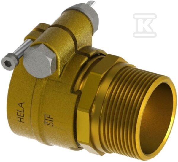 Złączka mosiężna przejściowa HELA-H 40×5.5mm-GZ 5/4″ PN10, do rur preizolowanych Pex/PE, oznaczenie: H 40 32-10 o numerze katalogowym 61004011400T w