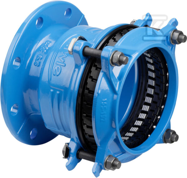 Łącznik RK SYNOFLEX, DN100 d104-132, PN16, rurowo-kołnierzowy, do wody i kanalizacji, do rur stalowych, żeliwnych, PE i PVC, z zabezpieczeniem
