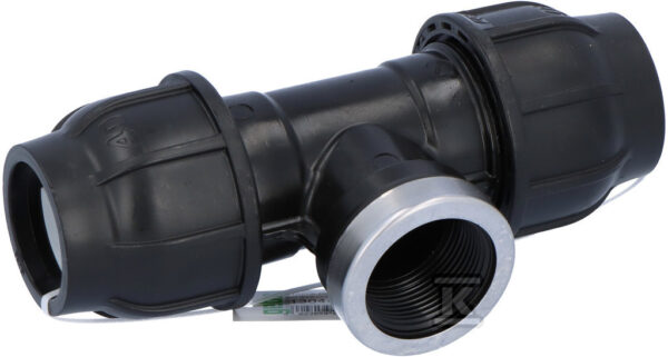 Trójnik zaciskowy PP 90st. 50×6/4″x50 GW gwint wewnętrzny PN16, do rur PE, kolor czarny o numerze katalogowym 13045005 w kategorii