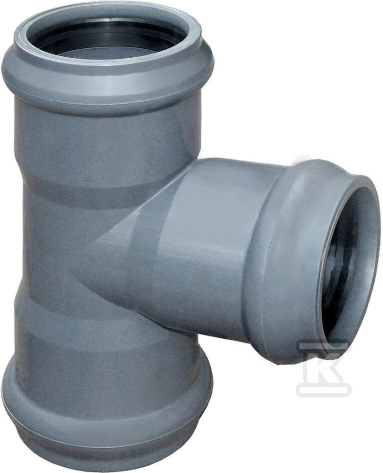 Trójnik ciśnieniowy kielichowy PVC 90×90/90 PN10 popiel o numerze katalogowym 0224371490 w kategorii Kształtki PVC do wody, Rury i kształtki