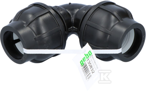 Kolano zaciskowe PP 90st. 32×32 PN16, do rur PE, kolor czarny o numerze katalogowym 130832 w kategorii Złączki skręcane do
