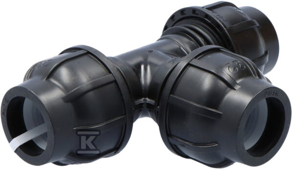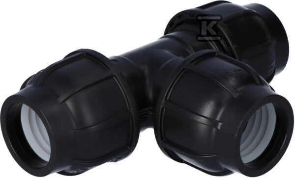 Trójnik zaciskowy PP 90st. 32x32x32 PN16, do rur PE, kolor czarny