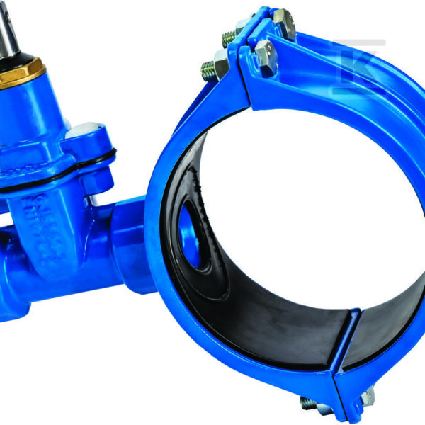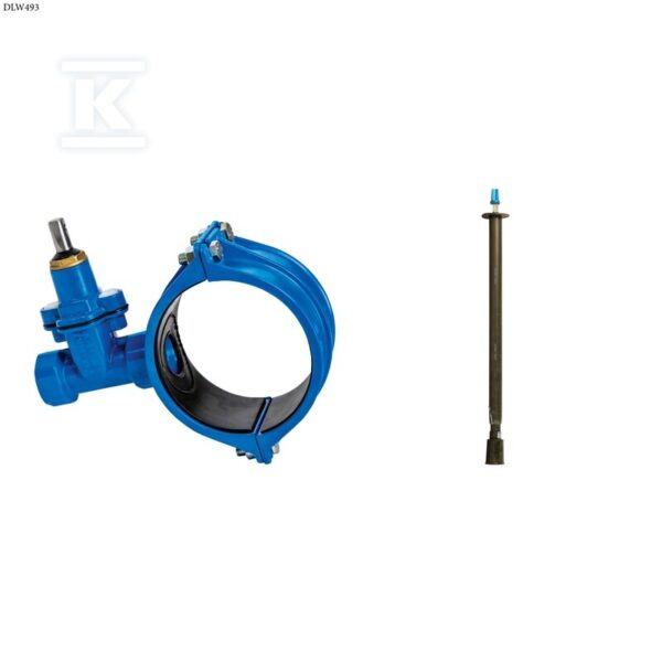 Zasuwo-opaska gwintowana NWZPE DN40x110, z szeroką opaską na rurę PVC/PE, PN16, GJS + obudowa teleskopowa ZESTAW o numerze katalogowym