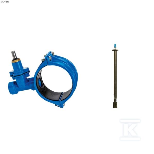 Zasuwo-opaska gwintowana NWZPE DN32x90, z szeroką opaską na rurę PVC/PE, PN16, GJS + obudowa teleskopowa ZESTAW o numerze katalogowym