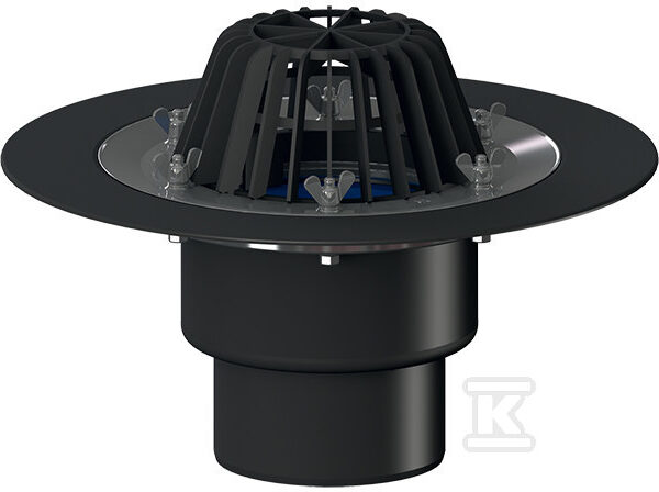 Wpust dachowy grawitacyjny DN75/110 poziomy, podgrzewany (10-30W/230V), kratka ściekowa z żeliwa 137x137mm o numerze katalogowym HL64.1 w kategorii Wpusty dachowe,