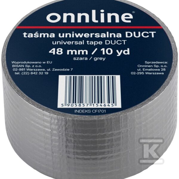 Taśma ONNLINE uniwersalna DUCT 48mm/10YD szara o numerze katalogowym B870004 w kategorii Taśmy do otulin, Taśmy instalacyjne. Produkt wyprodukowany przez