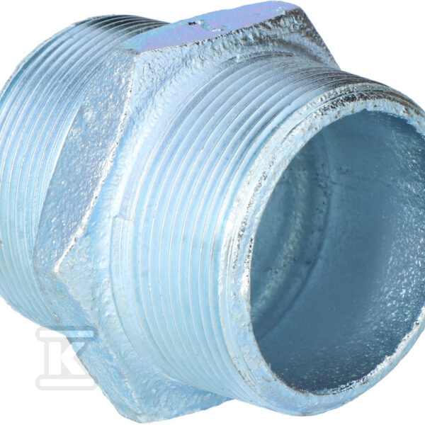 Nypel wkrętny równoprzelotowy 3/4″ ocynk N8, NR 38, NR 280 o numerze katalogowym 280-5V w kategorii Łączniki żeliwne ocynkowane, Łączniki
